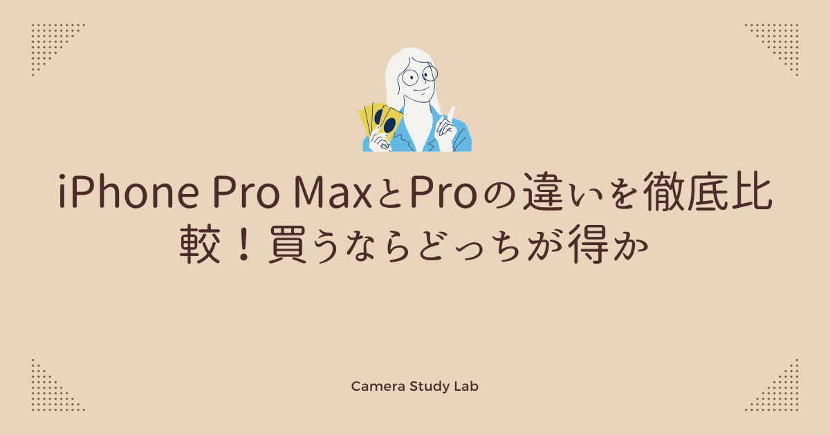 - ProとPro Maxのカメラ性能は同等で、体験差は主に画面サイズと電池持ちに現れる