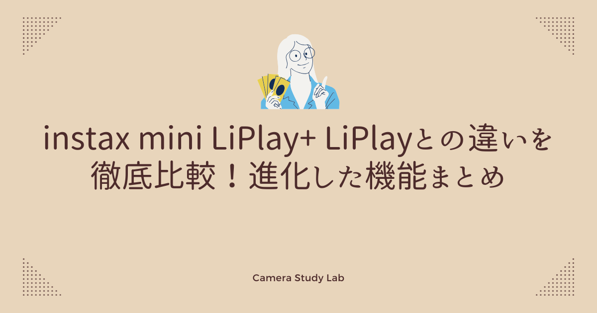 instax mini LiPlay+ LiPlayとの違いが気になる方は多いはず。新モデルのLiPlay+は“音で広がる”ハイブリッドインスタントカメラとして、従来機のLiPlayから着実に進化しました。本記事では、両モデルのスペックや機能差、買い替え検討時に押さえておきたいポイントをわかりやすく整理します。