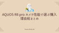 同じAQUOSシリーズの中でも、よりカメラに振ったモデルを検討したい場合は、ミドルレンジのsenseシリーズやハイエンドのRシリーズも候補になります。たとえば、より本格的なカメラ機能を重視するなら、AQUOSsense10のカメラ性能や選び方を解説した記事を読んで、どのクラスまで性能を求めるか整理してみるのもおすすめです。
