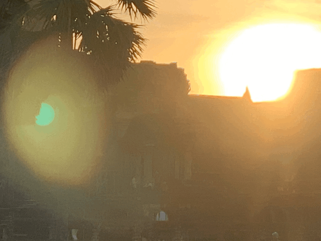 次に、「カメラを向けた方向に合わせて緑の点が動く」「撮影した写真の中にだけ緑の点が写り込む」というタイプの相談です。この場合は、プライバシーインジケーターではなく、レンズ内部の反射で起こるゴーストやフレアである可能性が高いです。特に夕焼けや夜景、イルミネーション撮影のときに出やすく、「スマホを向ける方向を変えると点の位置もスーッと動いていく」という特徴があります。