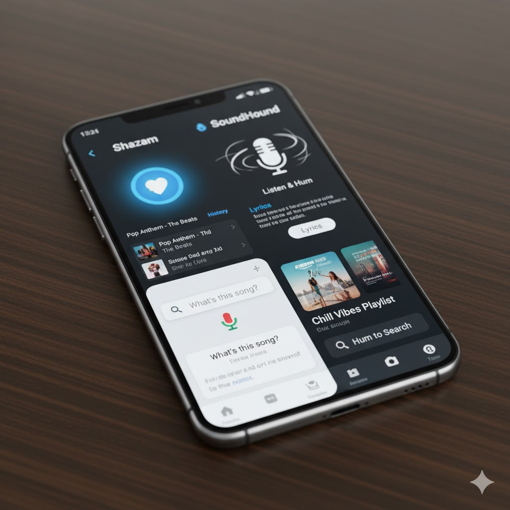 OSネイティブ機能だけではカバーしきれないケースもあるので、音楽検索アプリもいくつか押さえておきたいところです。ここでは、カメラロール動画曲検索との相性が良い代表的なアプリを整理しておきます。用途ごとに「メインで使うアプリ」と「サブで補うアプリ」を決めておくと、無駄な試行錯誤が減って効率的に曲名を探せます。