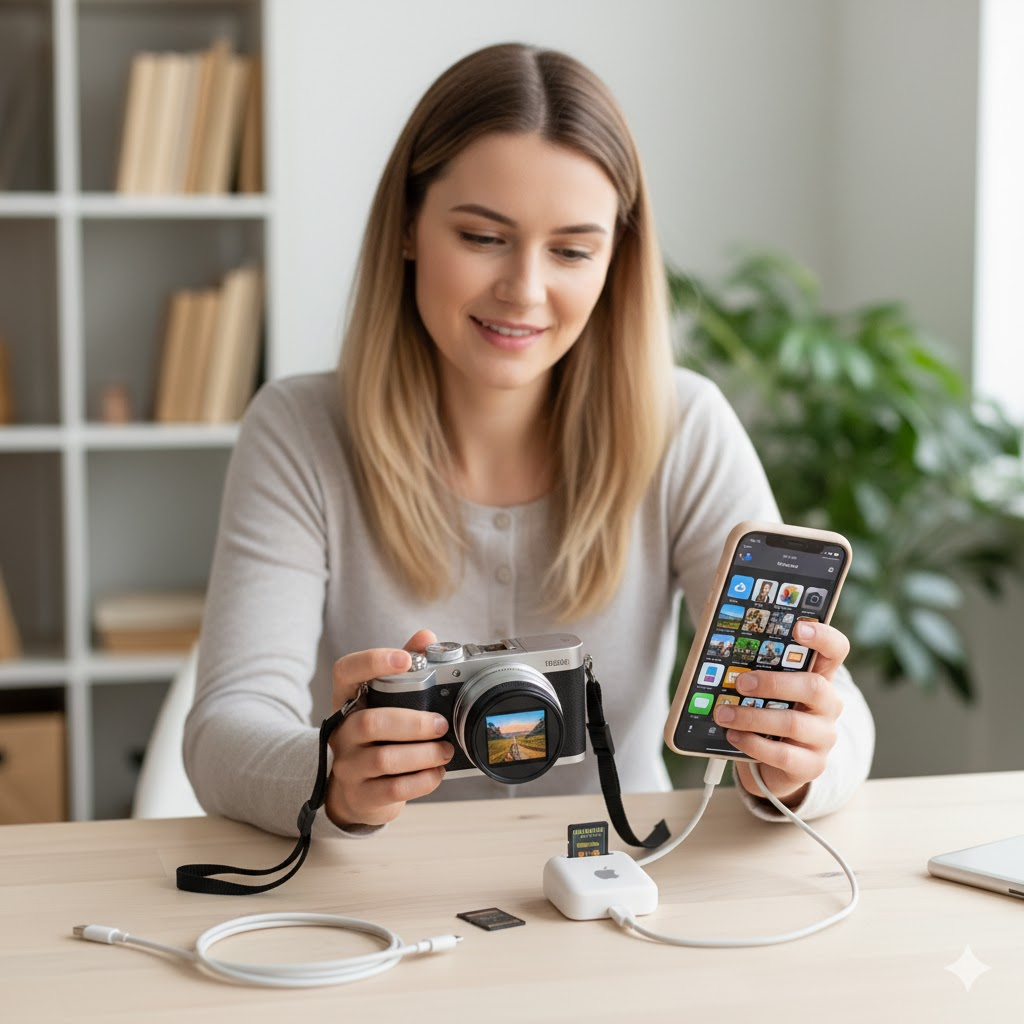 この記事では、そんなモヤモヤを解消できるように、デジカメの写真をスマホに移す方法をiPhoneに絞って、SDカードリーダー・Wi-Fi/Bluetooth接続・USBケーブル直結という3つの王道ルートを整理しつつ、よくあるエラーの原因と対処法までまとめて解説します。読み終わるころには、「自分はこの方法をメインにして、トラブルが出たらこの方法でリカバリーする」という形で、撮影から編集・保存・シェアまでの流れをしっかりイメージできるはずですよ。