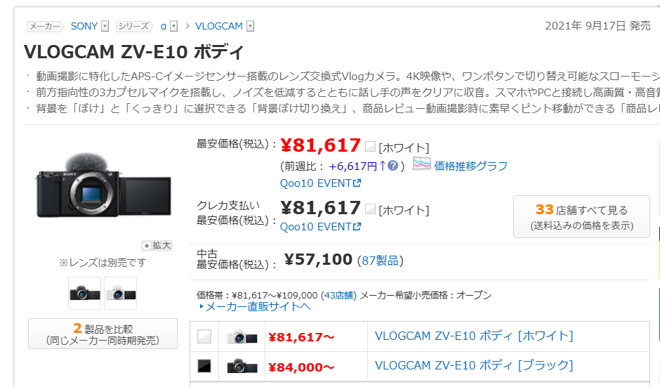 価格帯としては、ボディ単体でおおよそ8万円前後、パワーズームレンズキットでも10万円前後になることが多い印象です(いずれも時期やショップ、キャンペーンによって大きく変動します)。APS-Cセンサー搭載でレンズ交換式、Vlog向けの専用機能がここまで充実していることを考えると、コスパはかなり良い部類だと感じています。