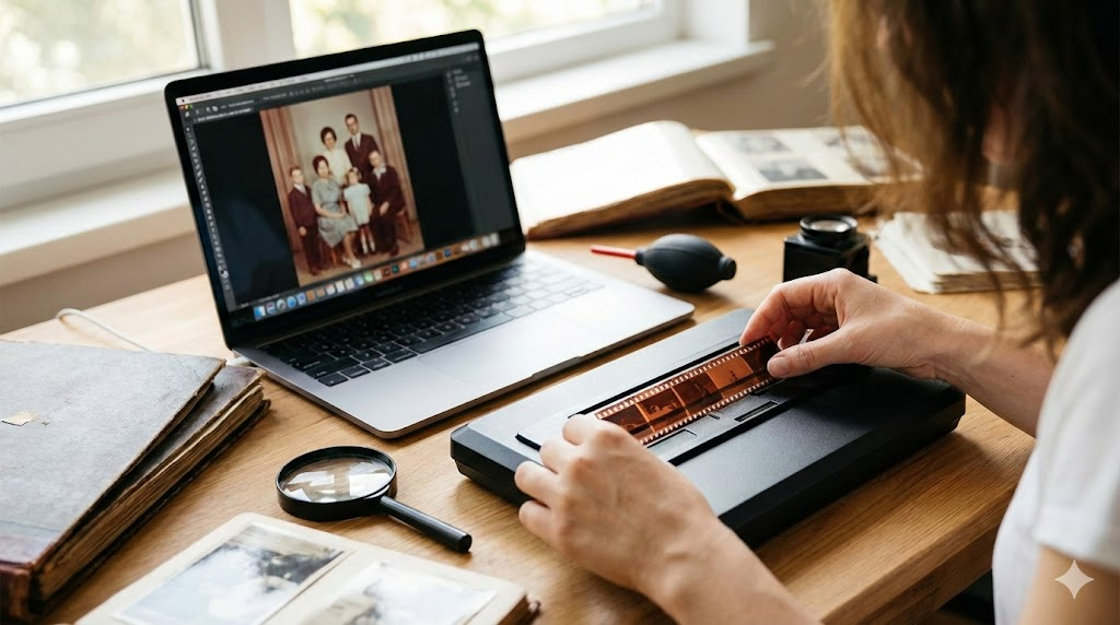 ネガフィルムのデータ化では、ネガポジ反転とカラー調整が仕上がりを大きく左右します。