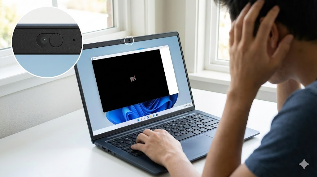 LenovoやHP、Dellなどのビジネス向けノートPCは、レンズに物理シャッターが付いていたり、Fn+F8などのショートカットで電気的にカメラをオフにできたりします。この段階でオフになっていると、どれだけソフト側を触っても映像は返ってきません。オンライン会議で「カメラ壊れてます」と言っていたけど、実はシャッターが閉まっていただけだった、という話は現場でも本当に多いです。