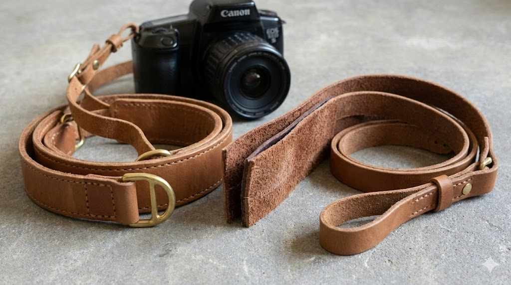 カメラストラップレザーは、同じ「牛革」と書かれていても、中身はかなり違います。ここを押さえておくと、スペック表の一行から機能面をイメージしやすくなりますし、「なんとなく良さそう」ではなく、自分の使い方に合うかどうかで判断できるようになります。