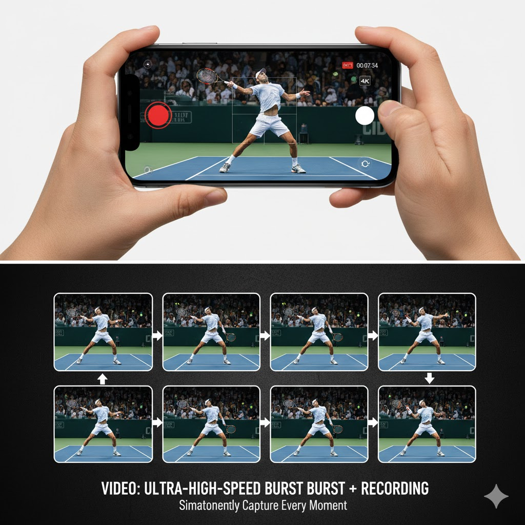 という点です。通常の4K動画からの切り出し(8.3MP)と比べると、かなり解像度に余裕が出てきます。スポーツやダンス、動きの速い被写体を撮るときには、こうした専用機能を持ったカメラを選ぶだけで、撮影のストレスがかなり減ります。連写のバッファを気にせず、「とりあえず撮っておいて後から選ぶ」というスタイルに切り替えられるのも大きなメリットです。
