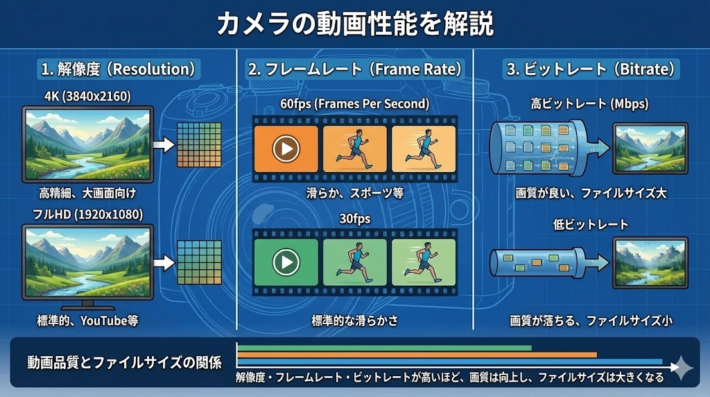 4Kやフレームレート、OIS/EISの考え方まで含めて整理すると、動画の比較が一気にラクになります。