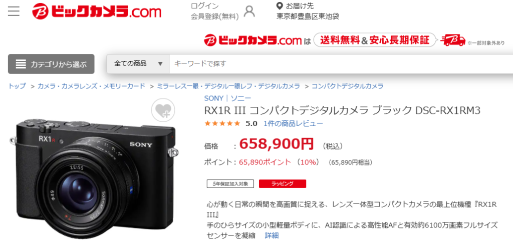 税込 658,900円 に設定されています。これはメーカー公式の基準価格として、実勢価格を判断する際の一つの目安になります(出典:ソニー公式ストア RX1R III 購入ページ )。